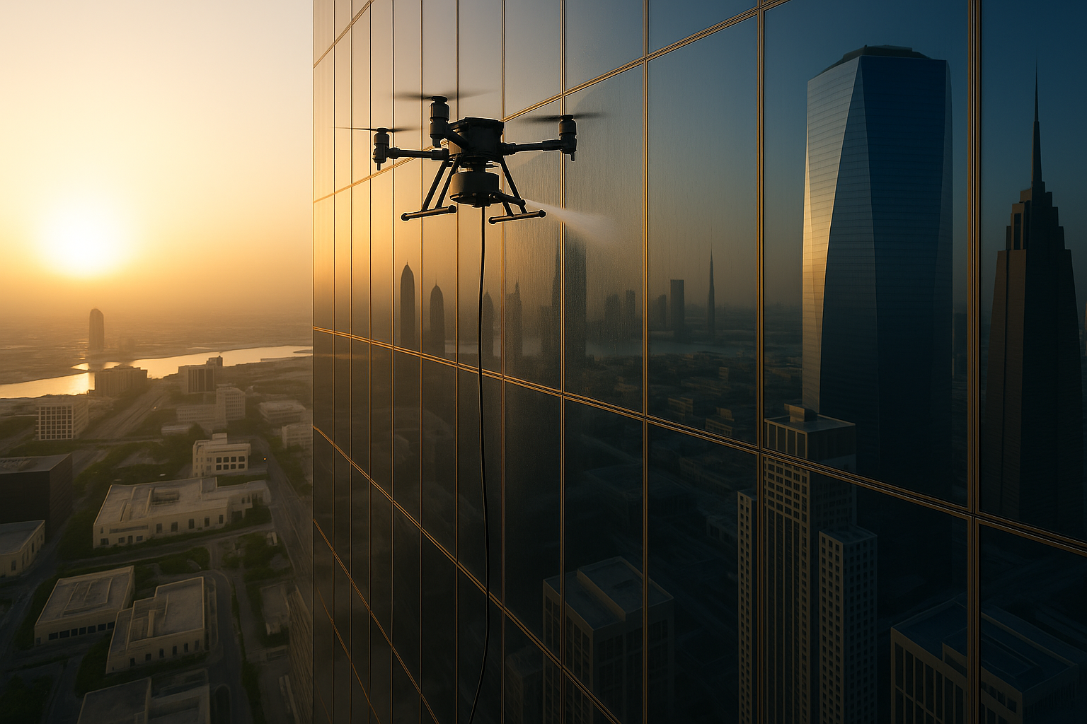 We use advanced UAV technology to clean buildings, villas, skyscrapers, mosques, towers, and aircraft with precision and minimal environmental impact. Each operation is performed under full GCAA and DCAA approval, ensuring safe and compliant aerial missions across the UAE.
